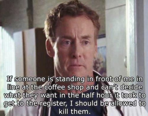 I am a person who spends a lot of time in line at coffee shops. I am also a person who knows what she wants; “strong skinny cappuccino, take away, please.” While I can order and pay in less than thirty-five seconds, there are so many pretentious sods walking around the city with their ‘small, half-strength, soy vanilla latte with two Splendas’ and weird caffeinated sugar- syrups masquerading as coffee covered in whipped cream and sprinkles.